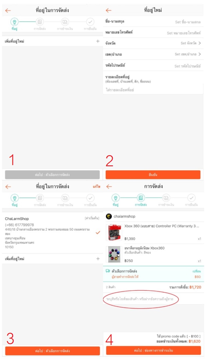 7. ที่อยู่ในการจัดส่ง รูป 1-3 กรอกให้เรียบร้อย