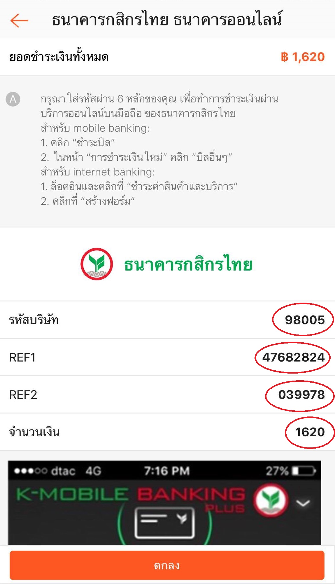 8. ในส่วนของการชำระเงิน (ในรูปเป็นการชำระออนไลน์ กสิกรไทย)